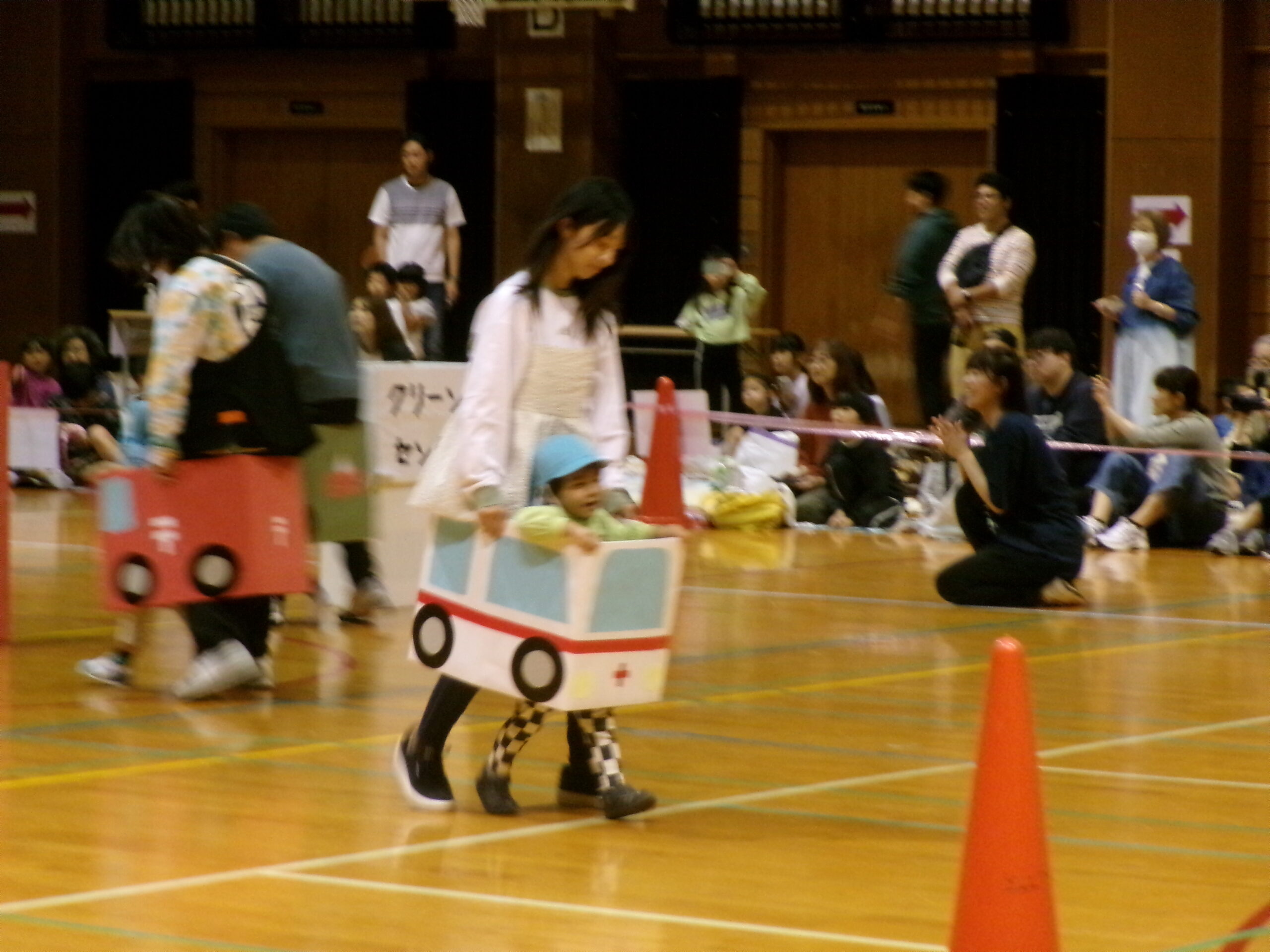 さくらんぼ組親子競技:乗り物が大好きな子どもたち。4つの乗り物にのってパパ・ママとお仕事体験へGO!