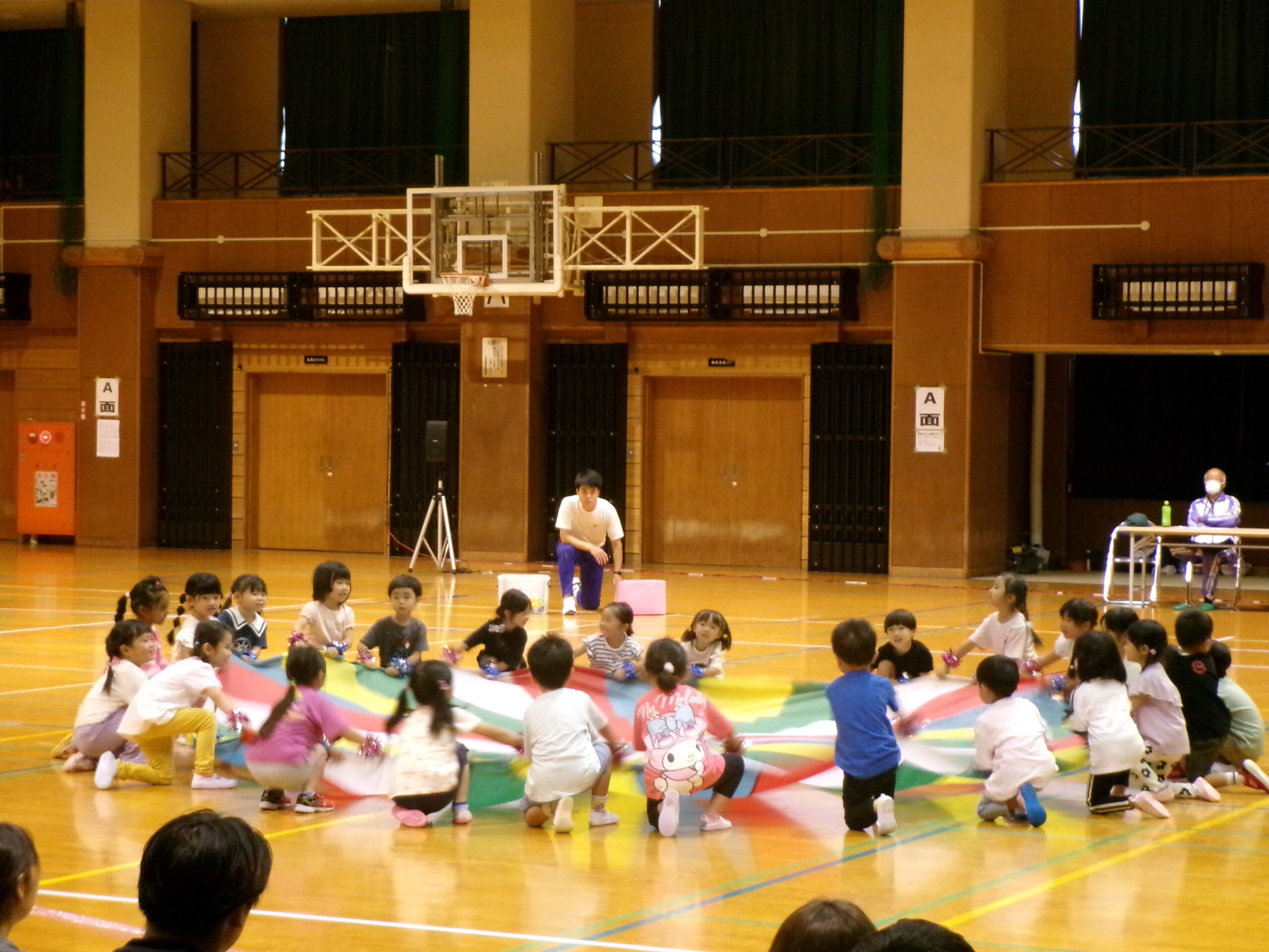 7月からパラバルーンの練習がスタートしたきりん組さん。去年のきりん組さんの話を聞いて「早くやってみたい!」とノリノリでした。練習の時からとても上手でいつも笑顔で参加していました。