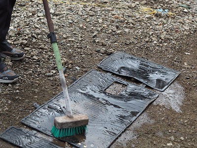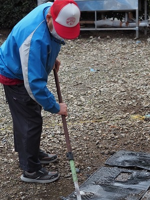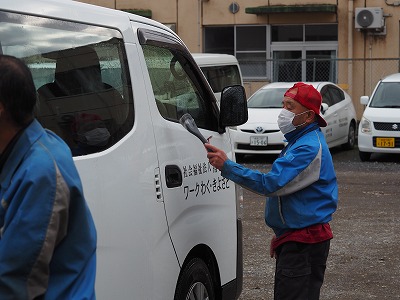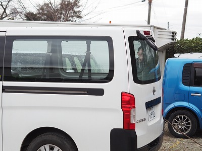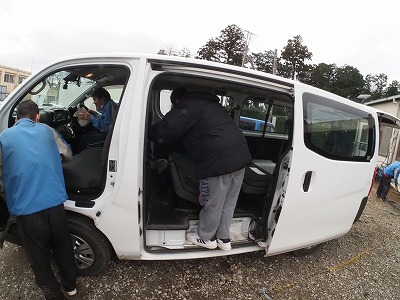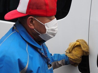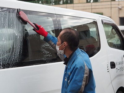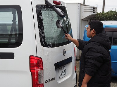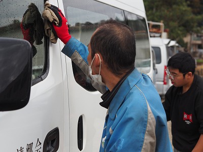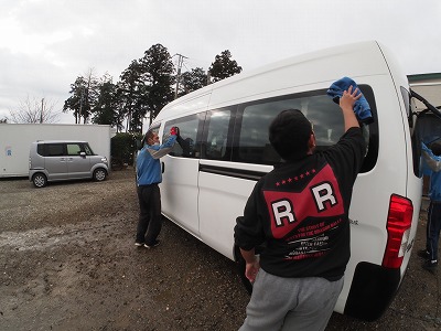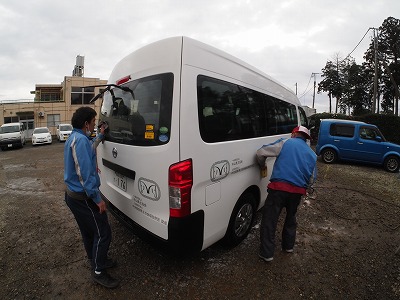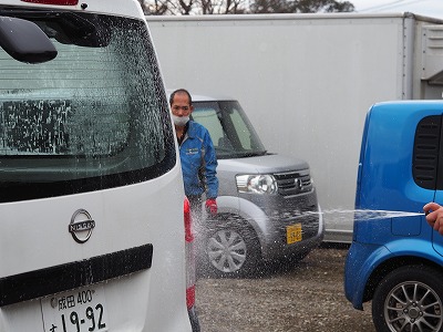 まずは洗車。一年間利用した作業車・送迎車を洗います。