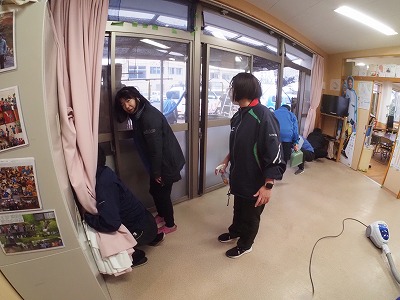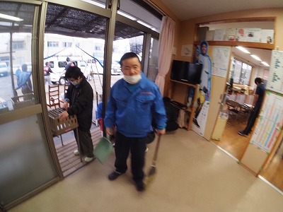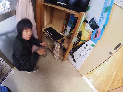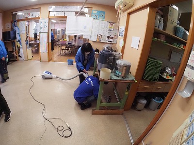 作業室でも机や椅子を運び出して床清掃を行いました。