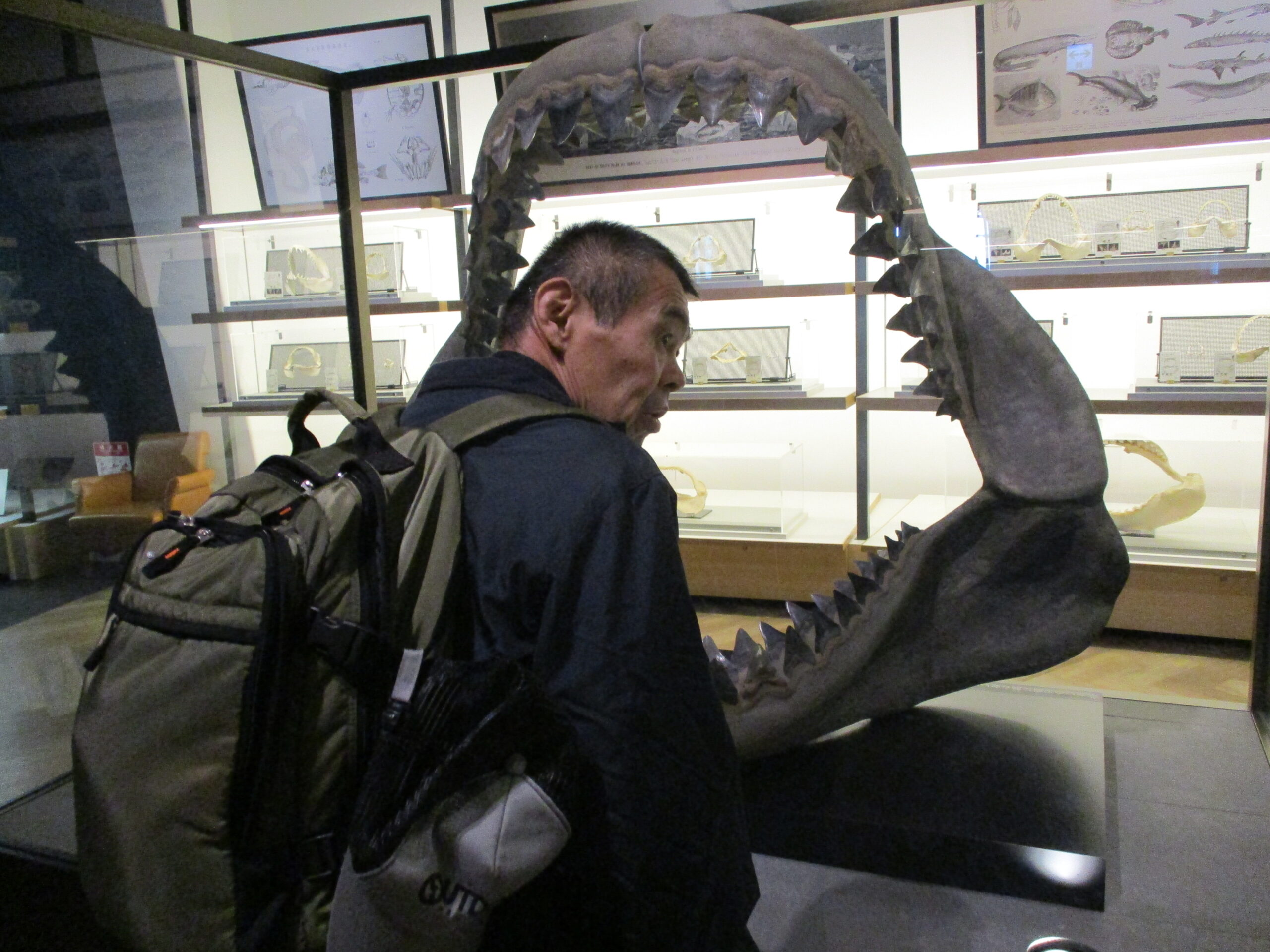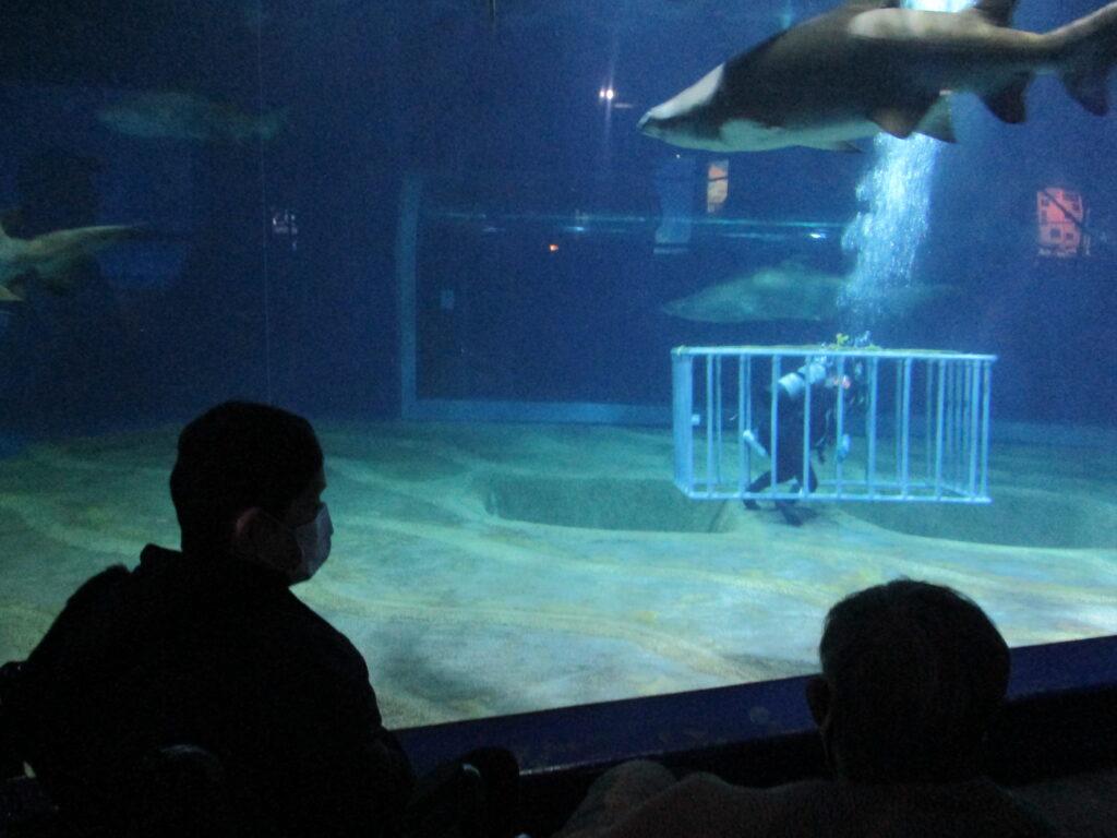 ん!?サメの水槽の真ん中に人が!!
