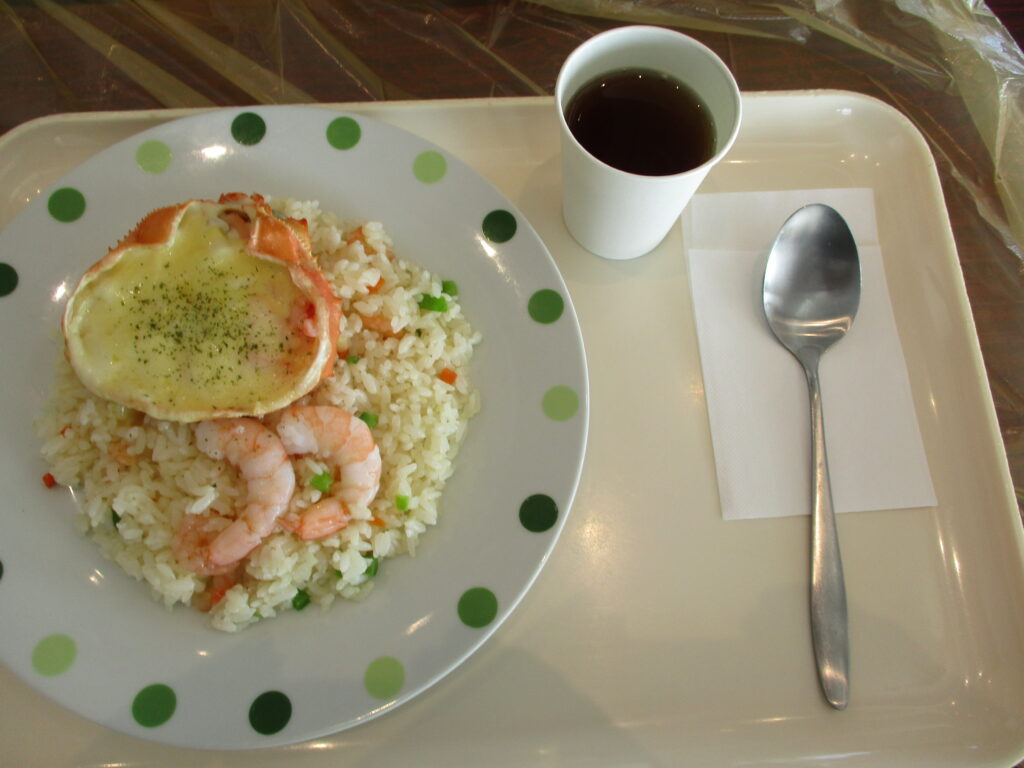 カニの甲羅グラタンと海老が乗った贅沢なピラフ!大好きなコーヒーと一緒に❤