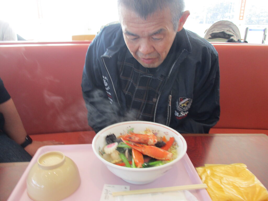 ラーメンには立派なカニの手が3本!!こちらのピラフにも肉厚のカニが!!