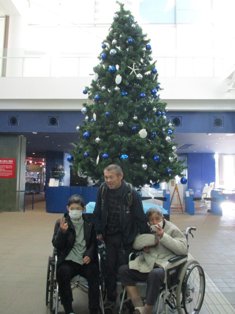 水族館入口にあった大きなツリーの前で記念撮影をして📸