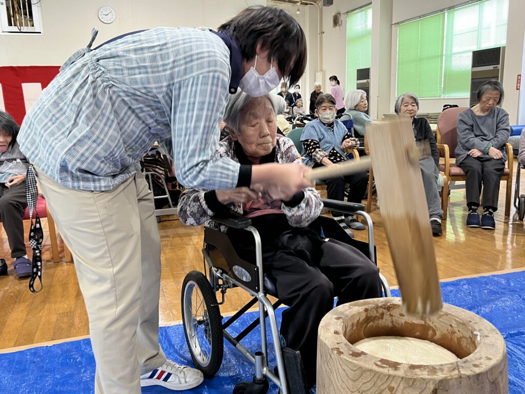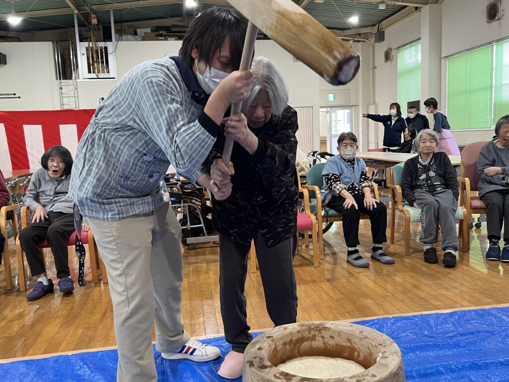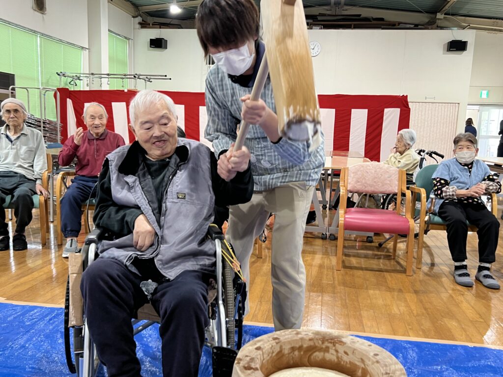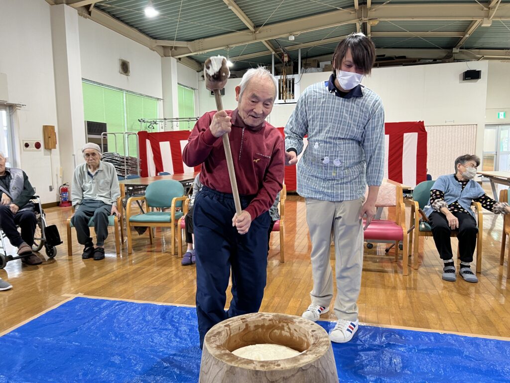 年に一度の九十九荘の餅つきです
