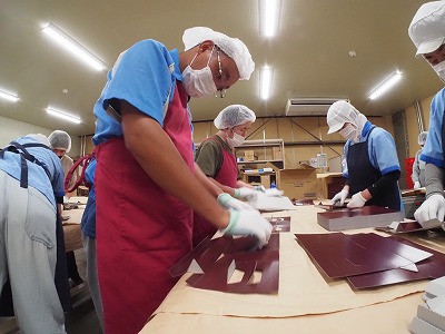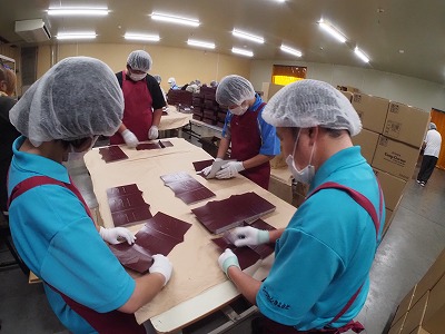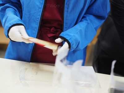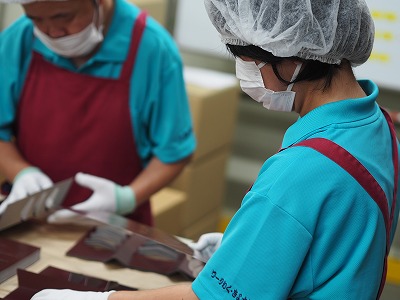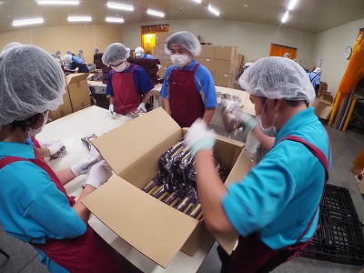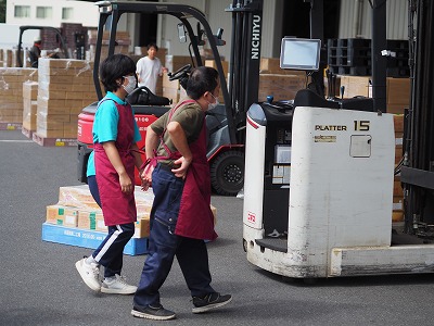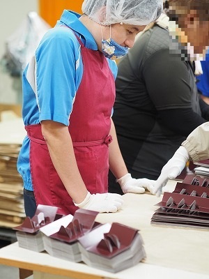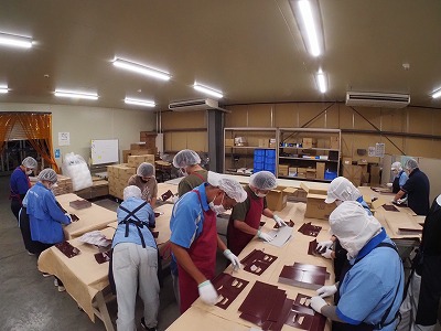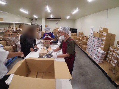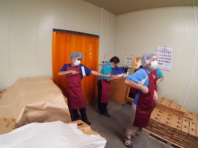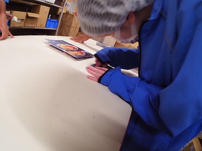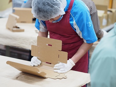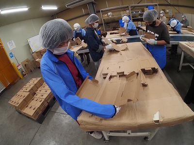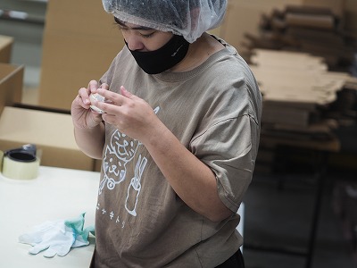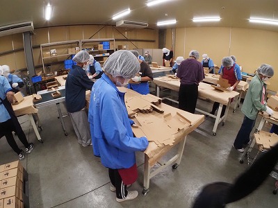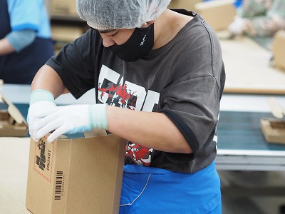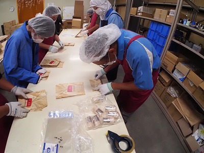 袋入れ、テープ留め、ラベル貼り、箱詰めと一連の作業を行いました。