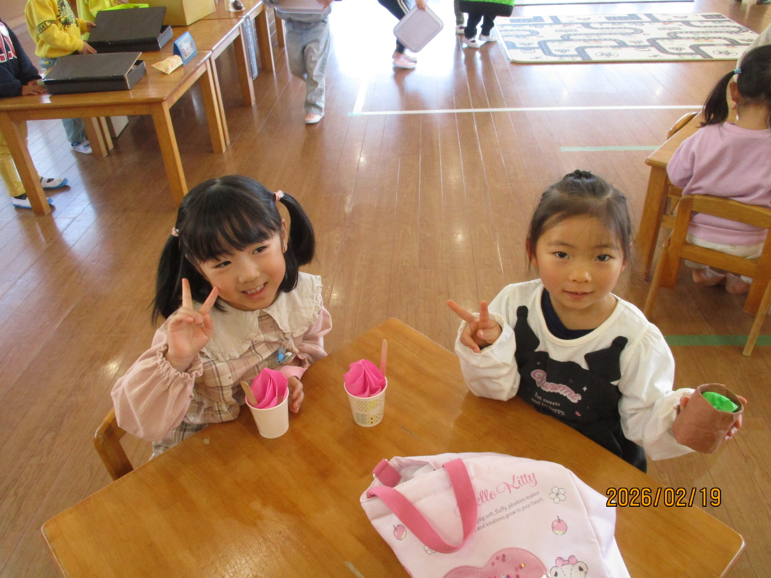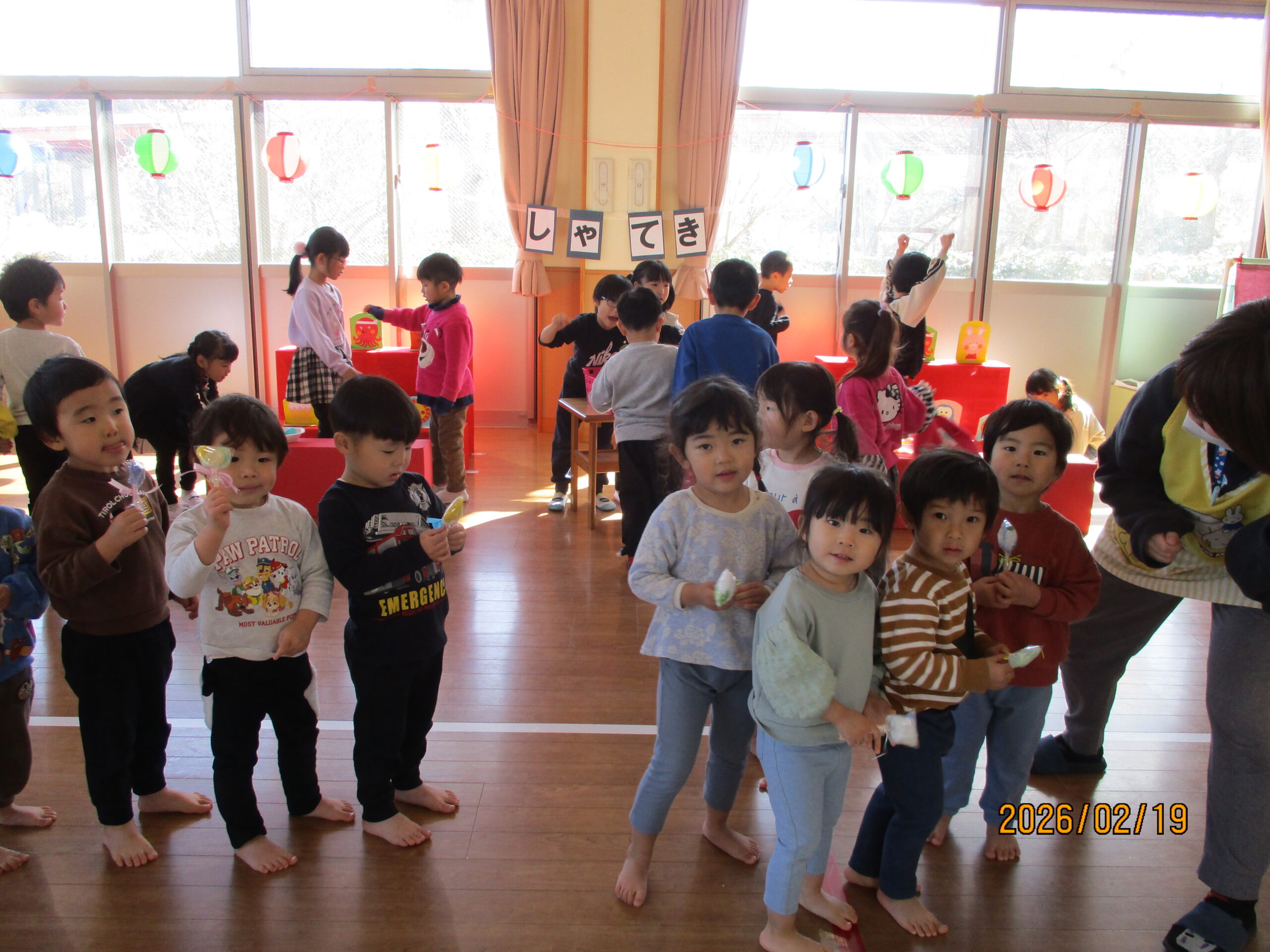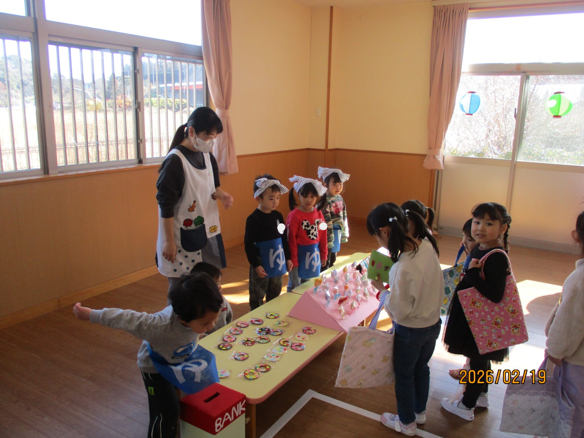 2月19日にお店屋さんごっこがありました。今年は「温泉街」をテーマに、ぱんだ組・きりん組・らいおん組が準備してくれました!