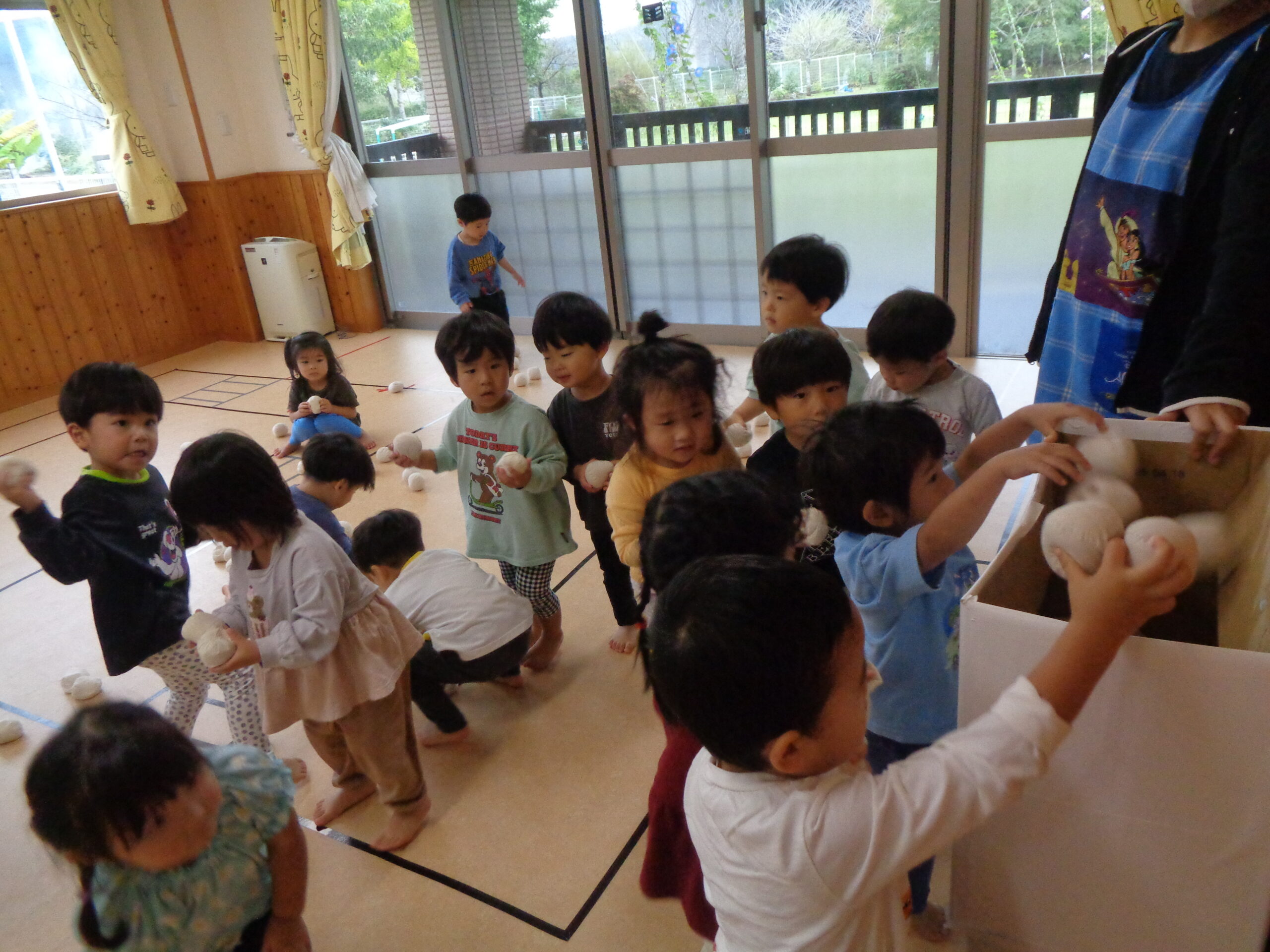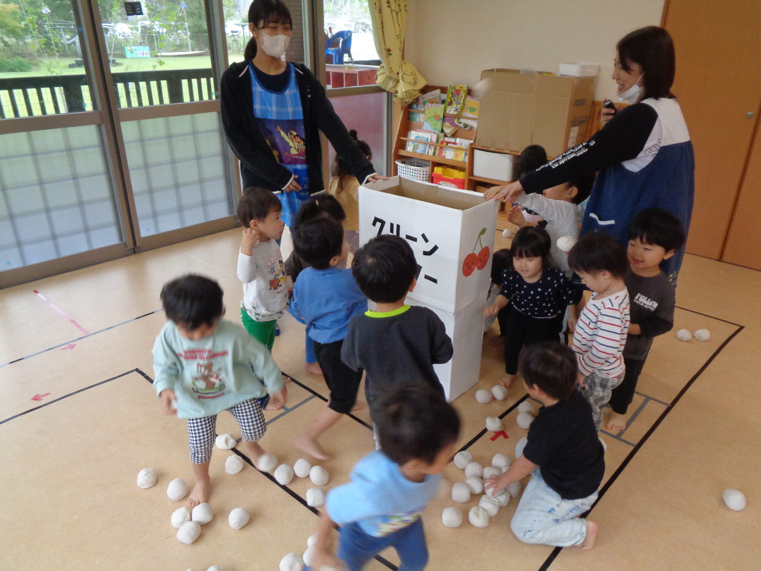 ○先日の運動会で使用した大道具を使って玉入れを楽しみました。