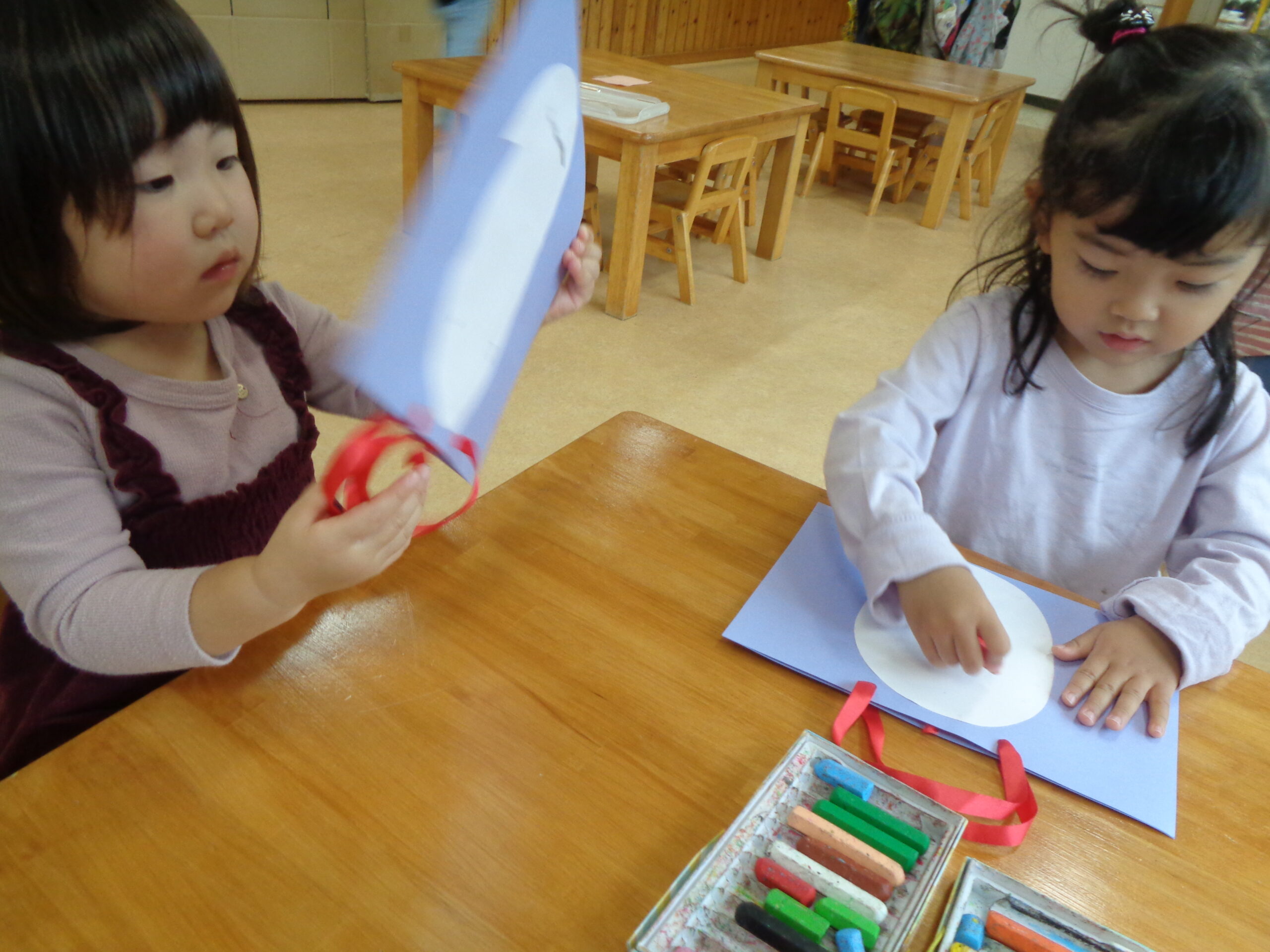 ○ハロウィンの製作では、オバケの顔を自分たちで描きました。