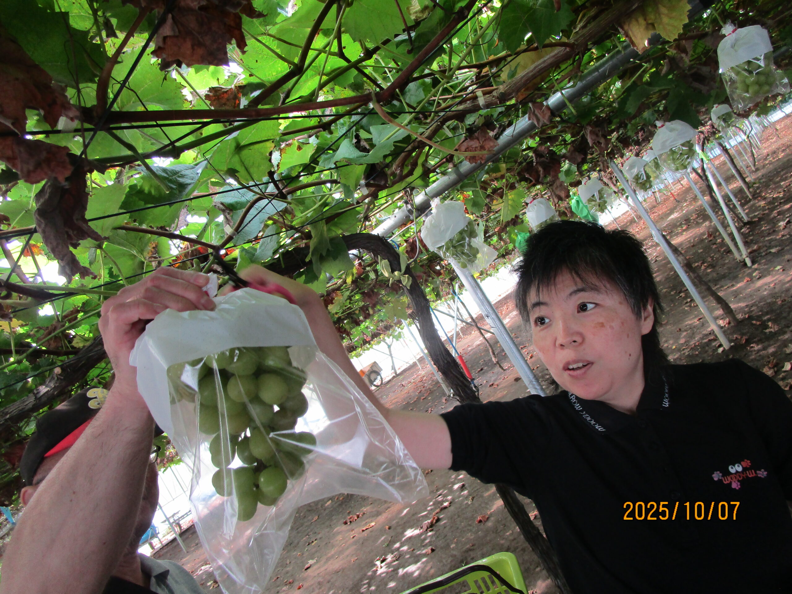 ぶどう園にてぶどう狩りを行い、美味しいご飯を食べてきました。