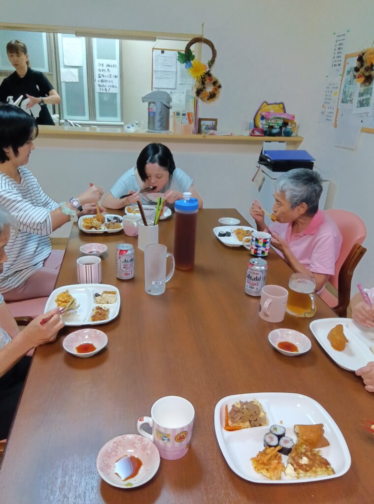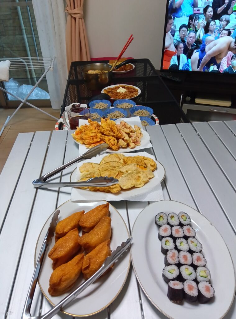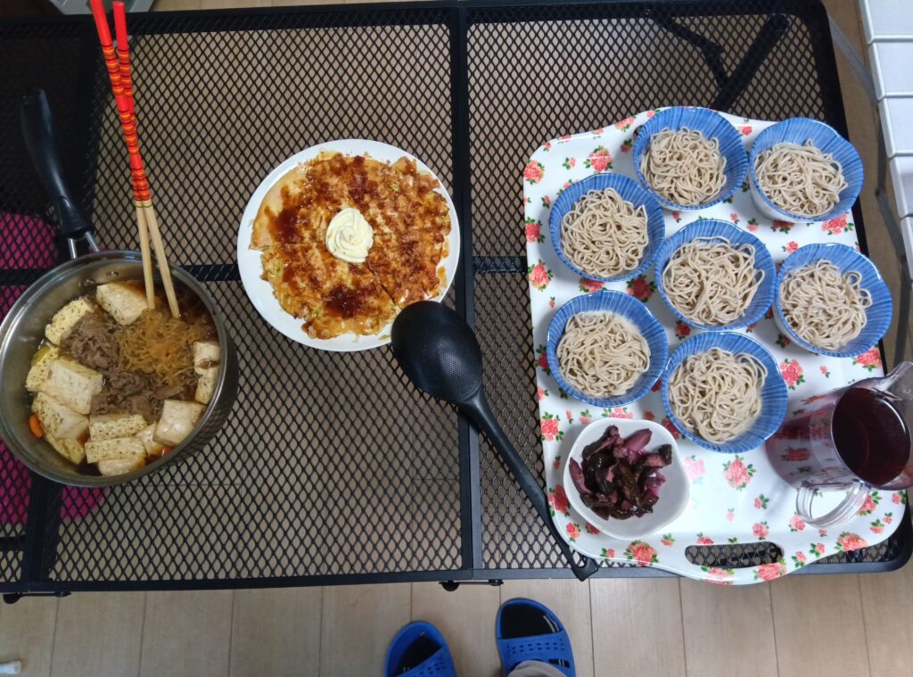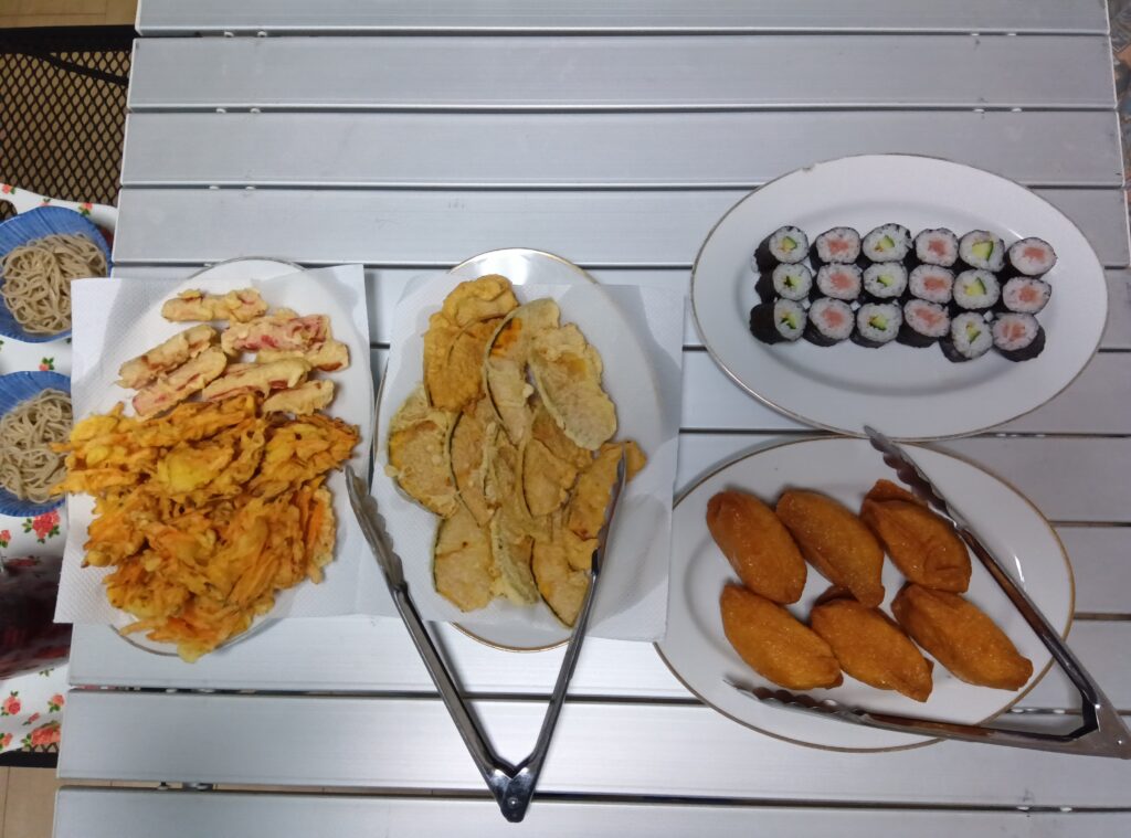 皆さんに希望をお聞きし、天ぷら、巻きずし、いなりずし、そば、お好み焼き、デザートなど
