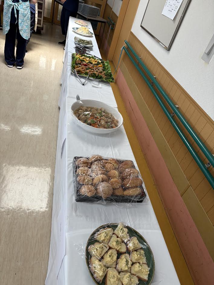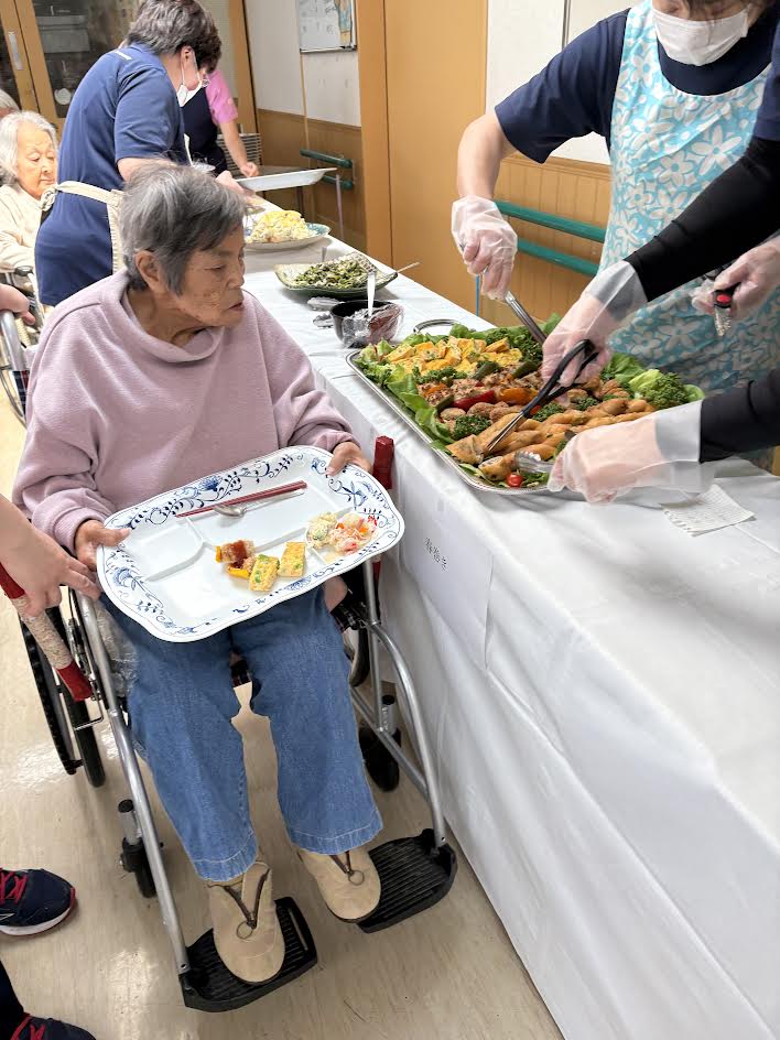 入居者の方たちも明るい表情でこれも食べたい!と職員から自分のお皿に盛りつけてもらい、中にはおかわりする方もいらっしゃいました✨