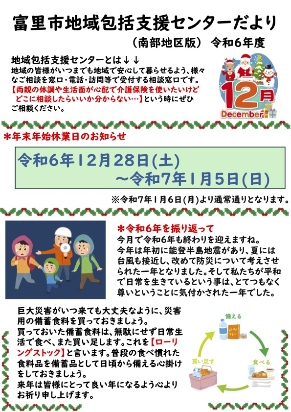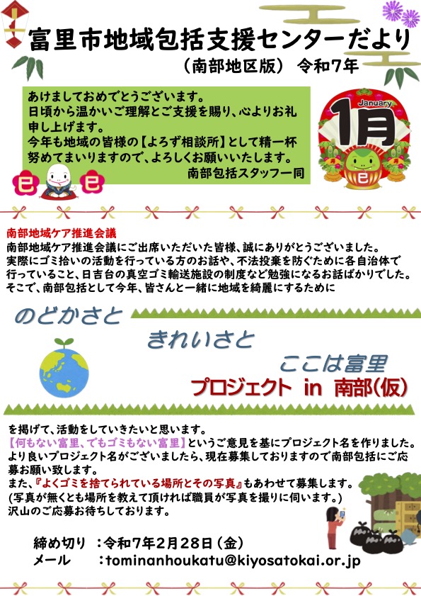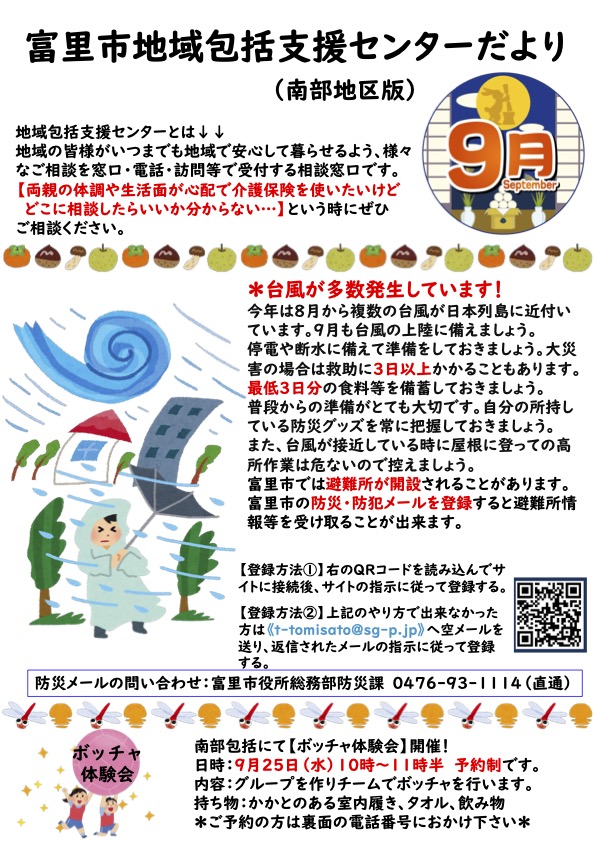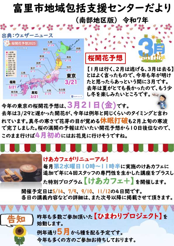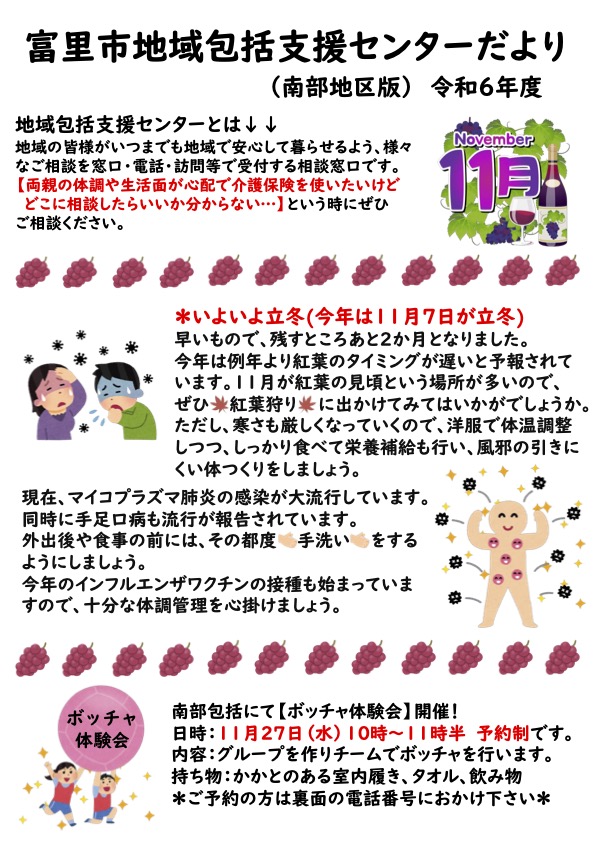 富里市南部地域包括支援センターが行うイベントや、その他お知らせについて発信しています。